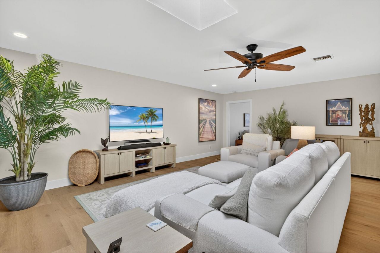 Tucked in a quaint, near beach, enclave, this serene lakefront residence sits on an oversized lot with a grandfathered paved circle driveway that is surrounded by dozens of mature palm trees. Positioned toward the back of this community, where privacy is plentiful and traffic fades into silence, you are just an easy stroll to the neighborhood public beach access to the Gulf.Elevated and recently updated, the home blends timeless island charm with thoughtful modern enhancements. The newly install...Tucked in a quaint, near beach, enclave, this serene lakefront residence sits on an oversized lot with a grandfathered paved circle driveway that is surrounded by dozens of mature palm trees. Positioned toward the back of this community, where privacy is plentiful and traffic fades into silence, you are just an easy stroll to the neighborhood public beach access to the Gulf.Elevated and recently updated, the home blends timeless island charm with thoughtful modern enhancements. The newly installed hurricane impact windows and doors provide comfort, security, and peace of mind. The beautiful wood floors lead to an expensive living room, crowned by a skylight, and framed by a wine bar that opens to a screened in lanai overlooking a shimmering lake frequently visited by wildlife.The home's newly updated kitchen offers modern stainless steel appliances, extensive granite countertop, space, and elegant cabinetry finishes that overlook the living room. The adjoining spacious full-size built-in pantry and laundry room provides more than enough storage for those extended stays. With tranquil view of the lake, the primary bedroom suite has a newly updated bath and a large custom designed walk-in closet with exceptional storage, and unexpected luxury in an island retreat. The guest suites, that are located at the opposite end of the home, not only offer privacy and views, but also provide your guest with spacious closet space as well as a custom built-in desk. The two car garage is fully insulated, provides sizable storage and is climate controlled with a dedicated split unit.Spend your days on Sanibel?s world famous sandy shores, feel the warm Gulf waters at your feet and embrace the island lifestyle that draws dreamers from around the world. Whether you prefer shelling at sunrise, kayaking along the shore, biking beneath swinging palms or simply relaxing by the lake, the best of Sanibel awaits you right outside your door. This beautiful, lovingly, upgraded home, is the tropical haven you've been waiting for.