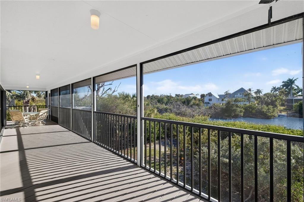 A huge screened lanai spans the full length of this lovely home and creates a tremendous amount of elevated outdoor living space. With sliders that line nearly every inch of this home's southwest exposure, the outdoor living space flows seamlessly with the indoor spaces. For years the current owners have referred to their home as their treehouse, which is entirely appropriate! Elevated and surrounded by native vegetation, a stunning array of birds, and the beautiful bayou that gives the communit...A huge screened lanai spans the full length of this lovely home and creates a tremendous amount of elevated outdoor living space. With sliders that line nearly every inch of this home's southwest exposure, the outdoor living space flows seamlessly with the indoor spaces. For years the current owners have referred to their home as their treehouse, which is entirely appropriate! Elevated and surrounded by native vegetation, a stunning array of birds, and the beautiful bayou that gives the community its name, this private, wooded home is a perfect way to be immersed in the nature of Sanibel. The house is extremely close to Bowman's Beach and its incredible shelling and to the Sanibel Recreation Center with its two pools, tennis, pickleball, and fitness opportunities. Blind Pass Beach and the restaurants and shops of Captiva are also closeby. The house has two full bedrooms with en suite bathrooms. A bunk room has been created where a laundry room was originally planned... it can easily be restored to a laundry room or continue to expand the accommodations of this charming home. A vertical platform lift at the front entry, adjacent to the 3 car garage provides fabulous convenience and accessibility. Enjoy the stunning sunsets from this incredible waterfront location and make this your treehouse at the beach!